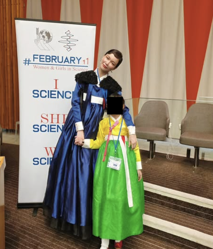 국제 연단에서 아시아인으로는 처음으로 초청된 송경아의 딸 해이가 ‘International Day of Women and Girls in Science Assembly’ 공식 행사에 연설자로 나서며 현장에 화제를 불러일으켰다.