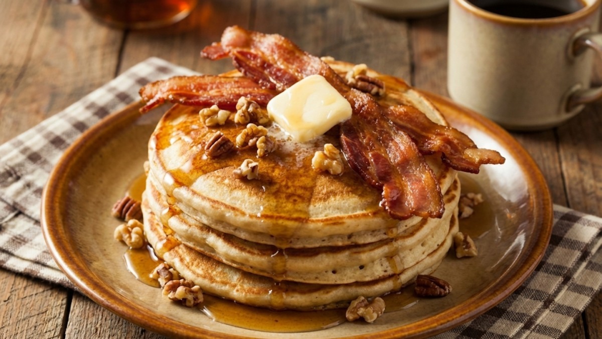 또 다른 레시피는 '단짠'을 활용하는 것이다. 팬케이크 위에 얇게 구운 베이컨이나 짭조름한 체다 치즈를 올리는 방식이다. 이는 미국식 브런치 스타일을 노밀가루 버전으로 재현한 것으로, 바나나의 과당이 열에 의해 카라멜라이징되면서 베이컨의 짠맛과 만나 입체적이면서도 조화로운 맛을 선사한다.