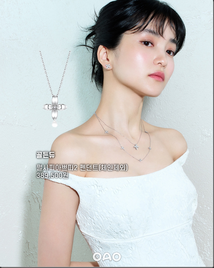 김태리가 착용한 골든듀의 ‘펄시피아쁘띠2 펜던트’는 섬세한 디테일과 고급스러운 감성이 돋보이는 디자인이다. 체인이 별도 구매 제품이지만, 클래식한 분위기로 오래 착용할 수 있는 아이템으로 꼽힌다. 가격은 38만9500원이다.