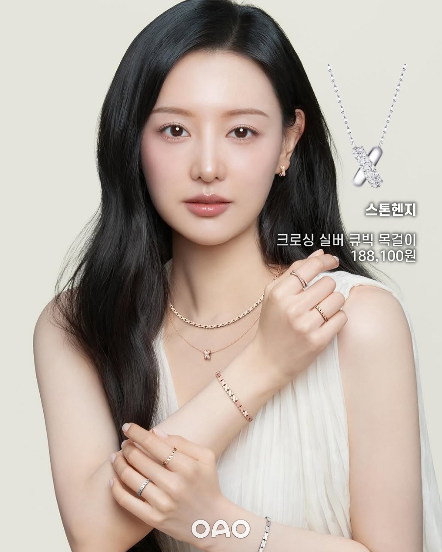 김지원이 착용한 스톤헨지의 ‘크로싱 실버 큐빅 목걸이’는 교차되는 형태의 펜던트에 큐빅 포인트를 더해 단정하면서도 세련된 분위기를 완성한다. 심플하지만 입체적인 구조 덕분에 어떤 스타일에도 자연스럽게 어울린다. 가격은 18만8100원이다.