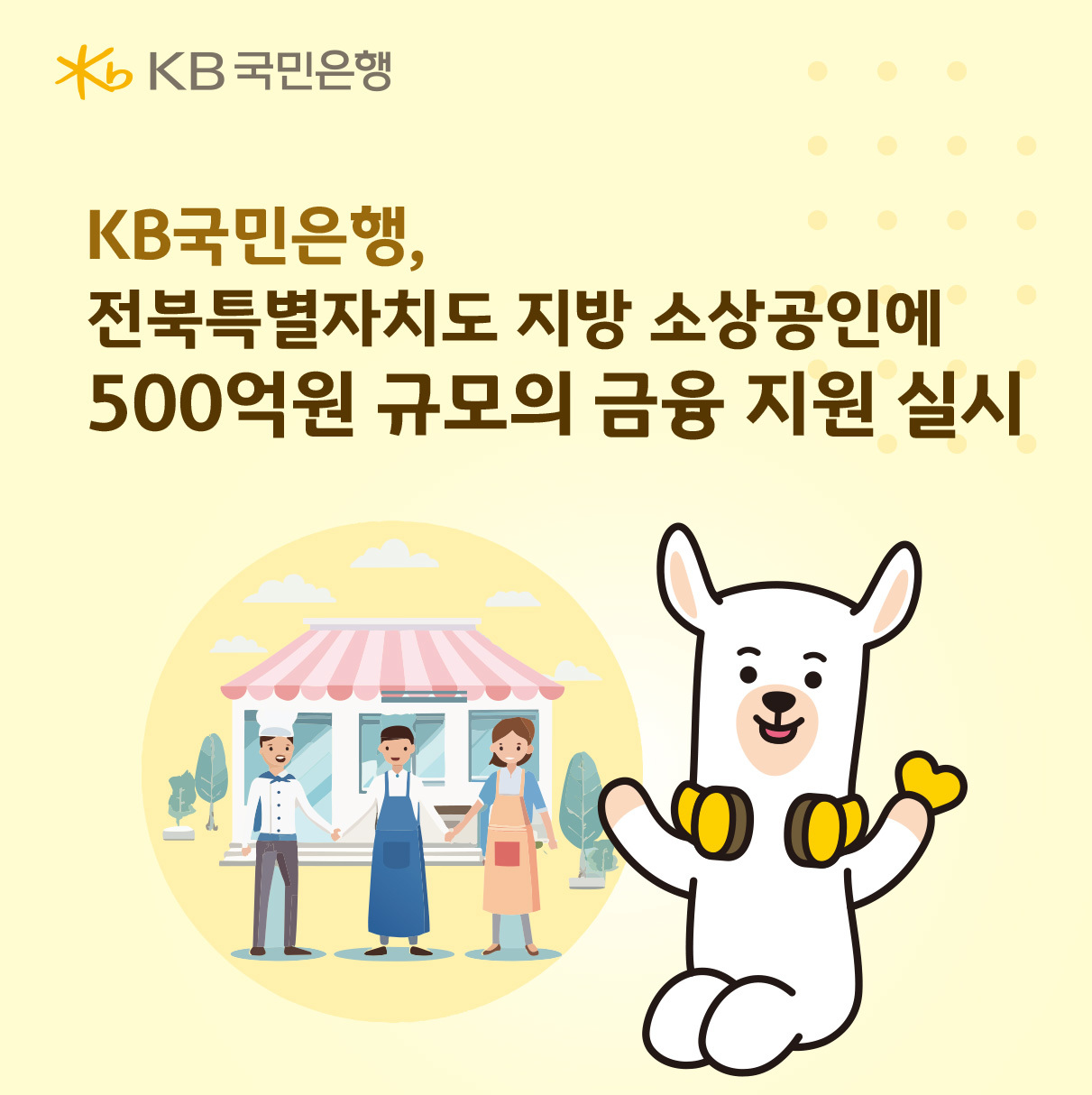 이번 지원은 지난 10일 전북특별자치도 및 전북신용보증재단과 체결한 '2026년 더 특별한 전북, 상생발전을 위한 소상공인 회생 보듬자금 지원사업 업무협약'의 후속 조치다. 협약에 따라 전북특별자치도와 KB국민은행은 각각 20억원씩 특별출연을 진행했으며, 이를 기반으로 총 500억원 규모의 보증서대출을 지원한다.