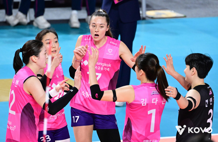 이날 흥국생명에서는 피치(14점), 레베카(11점), 이다현(10점)이 고루 활약했다.