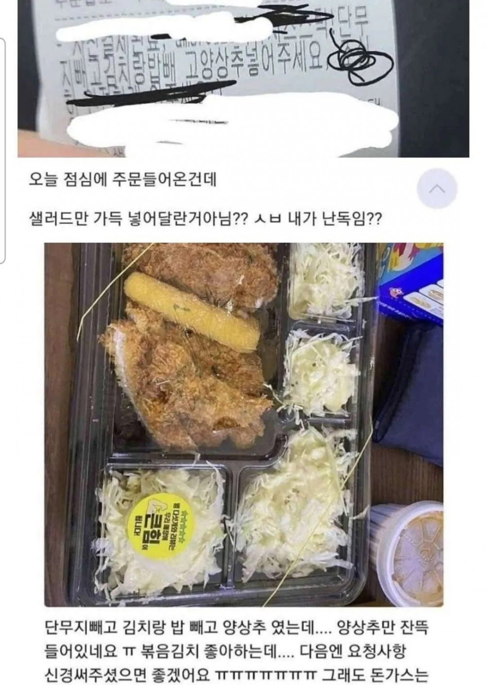 단무지 빼고 김치랑 밥빼고 양상추 넣어주세요