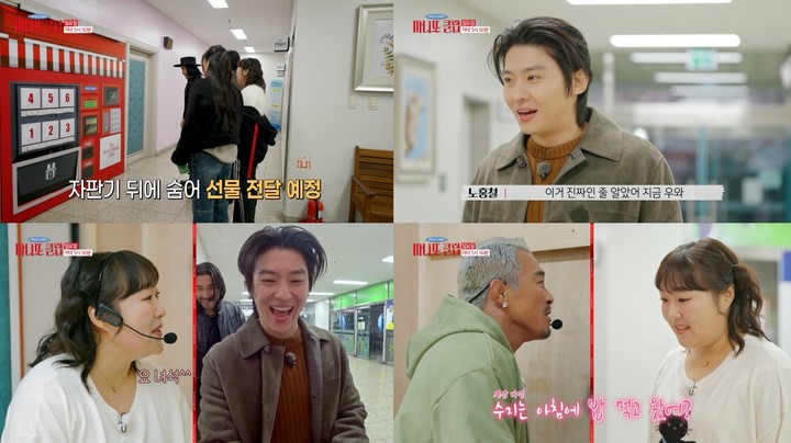 각자의 위치에서 미션을 수행하기 위해 자판기 뒤편에 몸을 숨긴 이들은, 학생이 자신의 학년을 외치면 해당 선물을 밀어 넣어주는 방식으로 깜짝 이벤트를 완성했다.