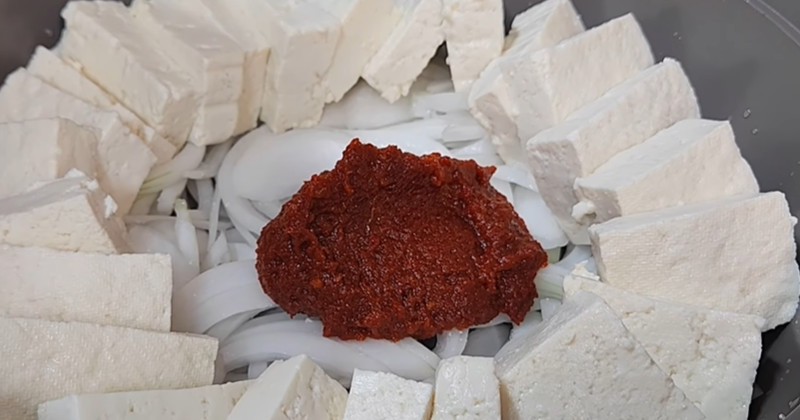 이제 냄비를 중불에 올린다. 참치 기름을 1큰술 정도 먼저 두르고, 다진 마늘을 넣어 볶는다. 마늘 향이 올라오면 양파를 넣고 투명해질 때까지 2~3분간 볶는다. 이 과정이 단맛을 끌어내는 핵심이다. 이어 고추장과 고춧가루를 넣어 기름에 한 번 볶아준다. 양념을 먼저 볶아야 텁텁함이 줄고 깊은 맛이 난다.