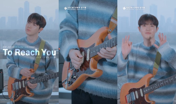 ‘너에게 닿기를’ 커버 영상에서 김재환은 기타 연주로 곡 특유의 분위기를 자연스럽게 살려내며 밝은 인사와 함께 리스너들에게 다가섰다.