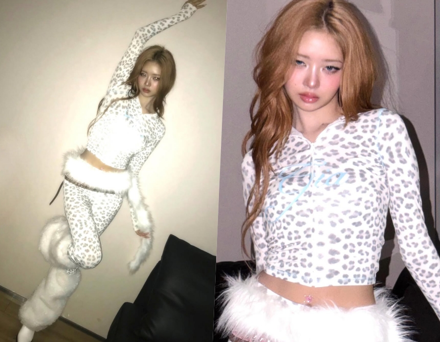 공개된 사진 속 레이는 레오파드 패턴의 타이트한 투피스를 입고 카메라를 응시하고 있다. 몸에 밀착된 실루엣이 슬림한 라인을 더욱 돋보이게 만들고, 허리에 더해진 퍼 디테일이 키치한 매력을 배가한다. 긴 웨이브 헤어와 글로시한 메이크업은 몽환적인 분위기를 완성했다.