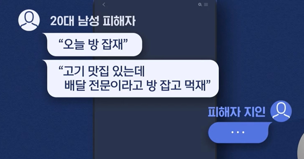 A 씨가 지인과 나눈 메시지에는 "오늘 방 잡재"라는 문구와 더불어 "고기 맛집이 있는데 배달 전문이라고 방 잡고 먹재"라는 내용이 포함돼 있었다. 이는 김 씨가 음식 배달을 핑계로 피해자를 숙박업소로 유인했음을 보여준다.