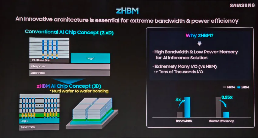 삼성전자는 zHBM이 최신 규격인 HBM4 대비 다음과 같은 성능 향상을 가져올 것이라고 밝혔음