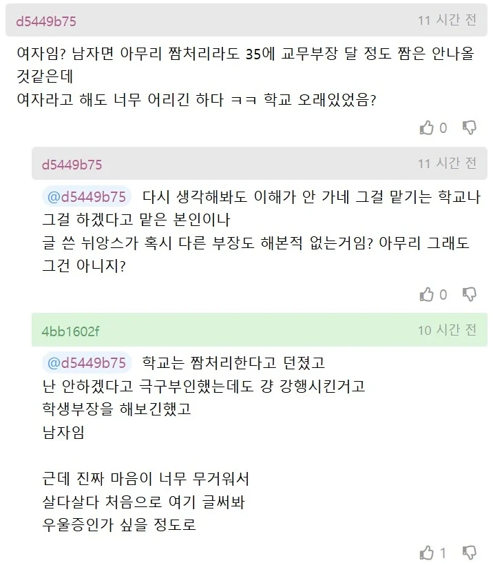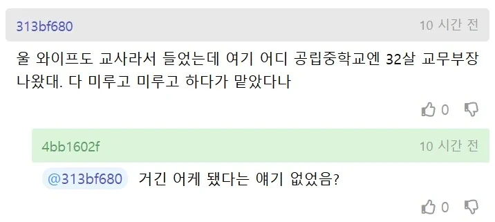 그것은 학교에서 교무부장 36살이면 3살한테는 아줌마 맞지 않아?체육대회와 수학여행, 축구를 없앤 초딩맘들피자집에서 언니 전남친 만났는데제로 음료 물처럼 마시면 ㅈ됨현재 ChatGPT Pro 대란으로 개ㅈㄹ난 당근 근황