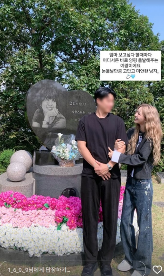 최준희와 남자친구는 결혼 발표 직후 어머니의 묘소를 찾은 사진도 공개했다.