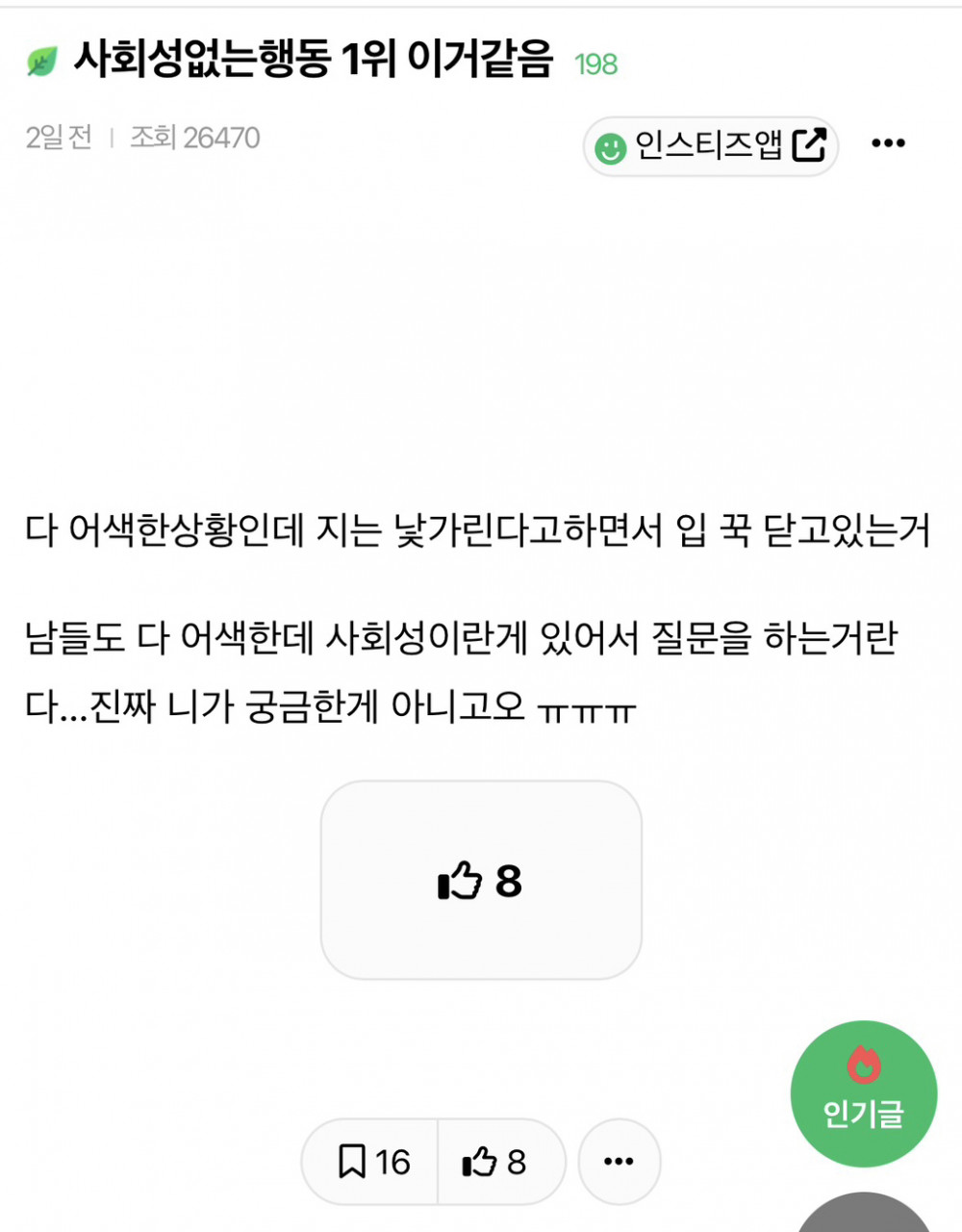 두쫀쿠 원조라는 집 논란 터짐배고픈 간호사가 병실에 들어간후 배불러진 이유설날 사촌 동생 왔는데 ㅈ된 거 같다는 야갤러고작 6만키로 타고 고장나는 현대 팰리세이드 수준디아블로2에서만 악마술사가 나오는 이유