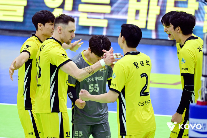 KB손해보험은 16일 수원 실내체육관에서 펼쳐진 2025-26시즌 진에어 V-리그 남자부 경기에서 한국전력을 세트스코어 3-1(25-18, 25-20, 21-25, 25-20)로 제압했다.