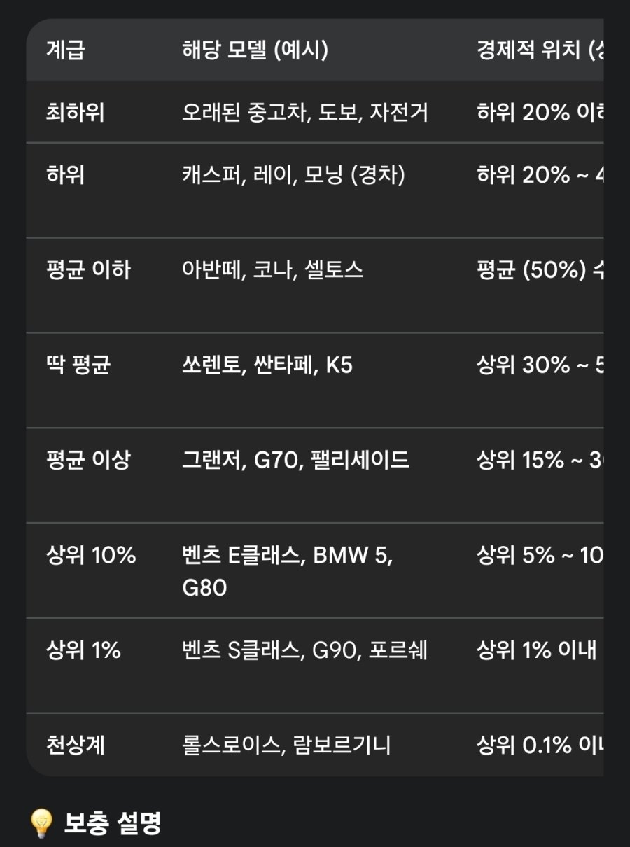 재미로 보는 한국 차량 계급도