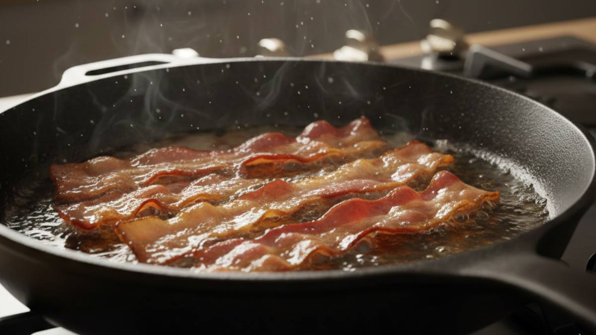 베이컨 굽기 전 ‘물’ 한 컵 부어보세요… 기름 튈 걱정 싹 사라집니다