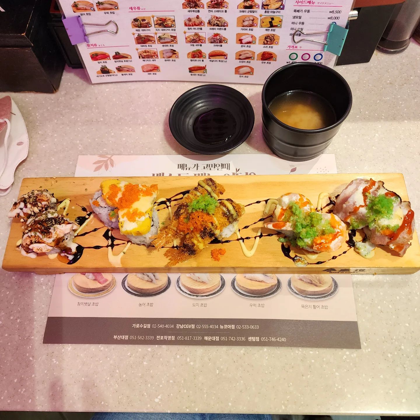 강남역 인근에 위치한 회전초밥 전문점 ‘스시마이우’는 합리적인 가격대에 퀄리티 높은 초밥을 맛볼 수 있어 인기가 높다. 특히 점심시간에는 직장인들로 북적이는데, 이 시간대에는 레일 위 모든 접시가 1,100원이라는 파격적인 가격으로 제공된다. 또한 포장 및 배달 서비스도 가능해 집에서도 간편하게 즐길 수 있다.