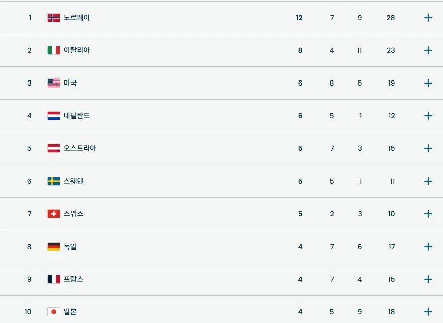 한국 목표였던 올림픽 TOP10 진입 사실상 실패