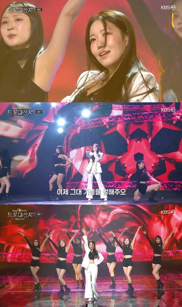 한편, 김희진은 TV CHOSUN ‘미스트롯1’ TOP8 출신으로, 최근 ‘미스트롯4’ 무대에 도전장을 던진 바 있다. ‘미스트롯4 미공개 스페셜’에서는 ‘구로 정수라’로 나서 정체를 숨긴 채 강렬한 보컬로 시선을 사로잡았다.