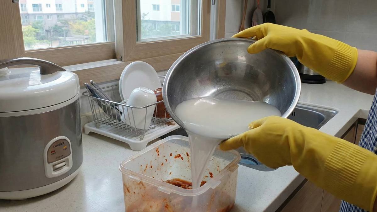냄새가 밴 반찬통에 쌀뜨물을 가득 채우고 30분에서 한 시간 정도 기다린다. 만약 냄새가 너무 심하다면 하룻밤 정도 푹 담가두는 것이 좋다. 만약 쌀뜨물이 없다면 집에 있는 밀가루를 활용해도 된다. 물 한 컵에 밀가루 한두 스푼을 풀어준 뒤 같은 방식으로 담가두면 쌀뜨물과 비슷한 효과를 볼 수 있다. 밀가루 역시 냄새 입자를 꼼꼼하게 잡아내기 때문에 설거지 후에도 남아있는 퀴퀴한 냄새를 잡는 데 아주 효과적이다.
