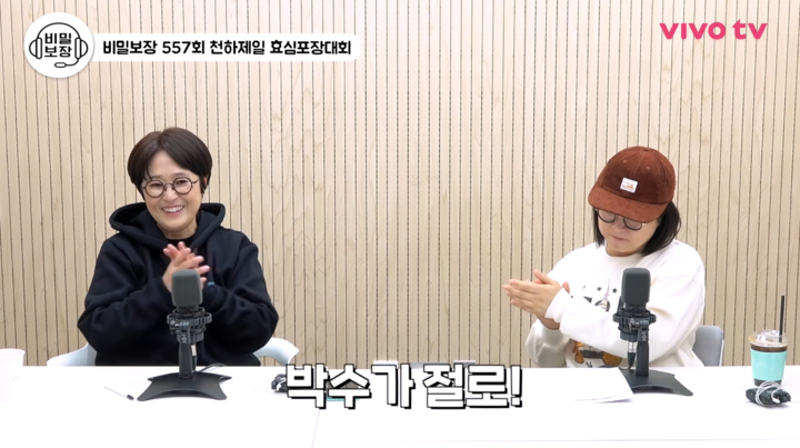 이날 방송에 도착한 첫 사연에서는 “부모님 치매 예방을 위해 만두를 빚게 했다”는 사연이 소개됐다. 이에 송은이와 김숙은 “손을 많이 쓰는 것이 뇌에 도움이 된다”며 청취자에게 ‘효녀’라는 칭호를 건네 현장을 웃음바다로 만들었다.
