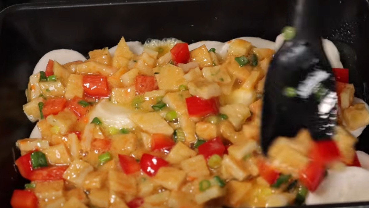 특히 혈당 스파이크를 방지하기 위해 반죽 내 채소의 비율을 떡의 양과 1:1 수준까지 끌어올리는 것이 권장된다. 특히 파프리카, 양파, 버섯 등 수분이 많고 식이섬유가 풍부한 채소를 다량 투입하면 떡 사이사이에 섬유질 막이 형성된다. 이 섬유질은 탄수화물이 포도당으로 분해되어 혈관으로 침투하는 속도를 물리적으로 지연시킨다.