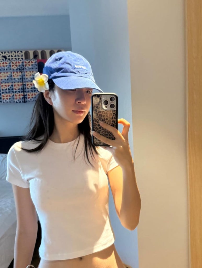 첫 번째로 시선을 사로잡은 건 비키니와 볼캡의 조합이에요.