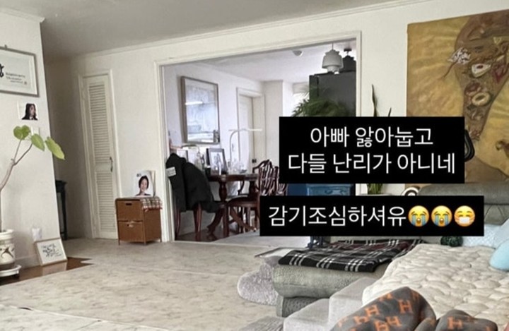 이어진 메시지에서 “감기 조심하셔유”라며 가족과 본인의 컨디션이 모두 저하된 상황임을 강조했다.