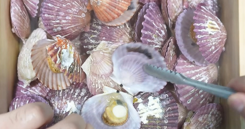 홍가리비는 껍데기 표면이 붉고 윤기가 도는 것을 고른다. 살짝 두드렸을 때 단단히 닫히는 것이 신선하다. 구입 후에는 소금물에 20~30분 정도 담가 해감을 한다. 가리비는 조개류 중 비교적 해감이 쉬운 편이지만, 혹시 남아 있을지 모를 이물질을 제거하는 과정이다. 이후 흐르는 물에 껍데기를 솔로 문질러 씻는다.