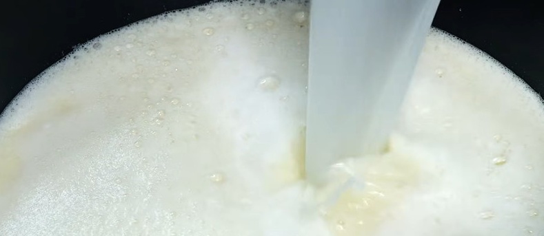 갈아둔 밤과 우유 혼합물을 냄비에 붓고 약불에서 천천히 끓인다. 바닥이 눌어붙기 쉬우므로 나무주걱으로 계속 저어야 한다. 끓기 시작하면 점점 걸쭉해지는데, 이때 농도를 보고 우유나 물을 소량 추가해 조절한다. 우유를 사용하면 끓는 과정에서 쉽게 넘칠 수 있으니 불 조절에 신경 써야 한다.