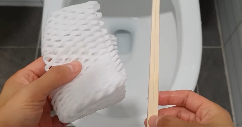 과일망은 탄성이 있고 표면이 오돌토돌해 마찰력이 좋다. 이 특징을 활용하면 변기 안쪽 굴곡진 부분을 닦는 데 효과적이다. 준비물은 과일망과 나무젓가락 한 벌이면 충분하다.