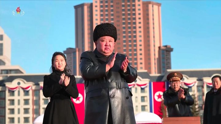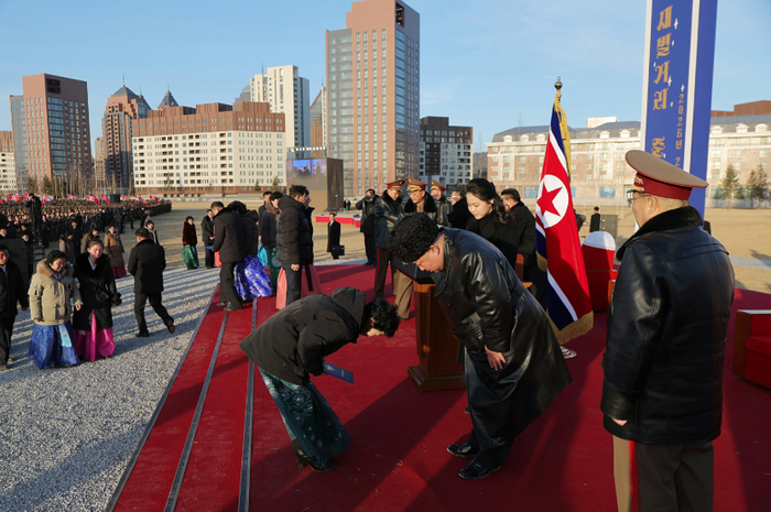 평양 화성지구 ‘새별 거리’ 준공식에 김정은은 딸 김주애, 해외작전부대 지휘관·전투원, 파병군 유가족들까지 총집결시켰다.