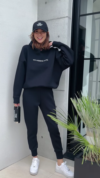 후드티와 조거 팬츠를 매치한
