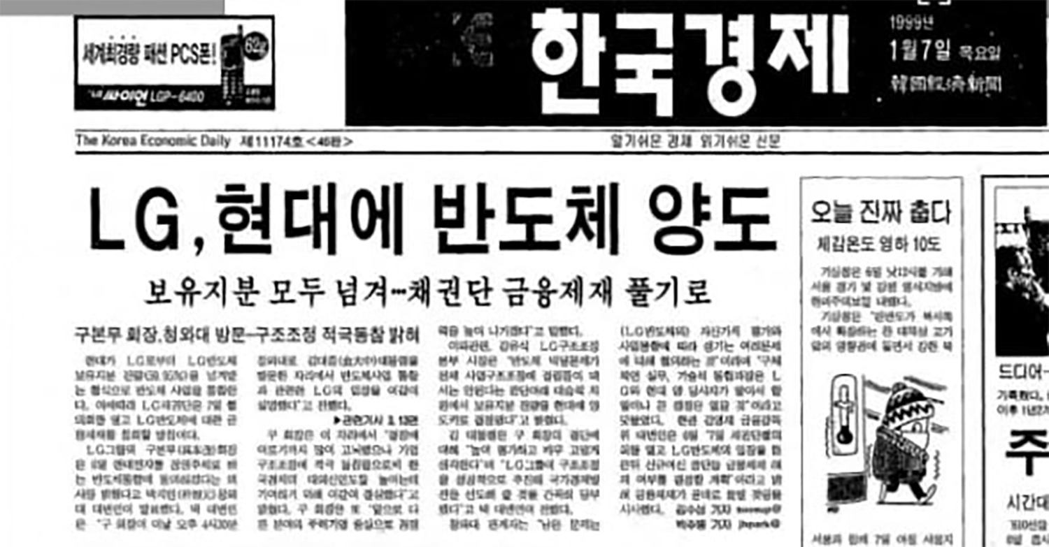 그중에서도 가장 치열했던 격전지는 바로 반도체였다. 당시 현대전자와 LG반도체는 생존을 건 단일화 압박 앞에 섰다.
