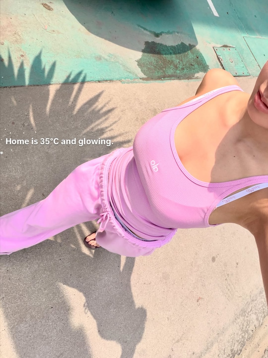 사진 속에는 핑크색 민소매 톱과 스웻팬츠로 셋업 스타일을 완성한 나띠의 모습이 담겼다. 최근 설 연휴를 맞아 나띠는 고향인 태국에서 여유로운 시간을 즐기고 있다. 그는 해당 장소의 기온이 35도라며 뜨거운 날씨를 즐기는 모습을 공개하기도 했다.
