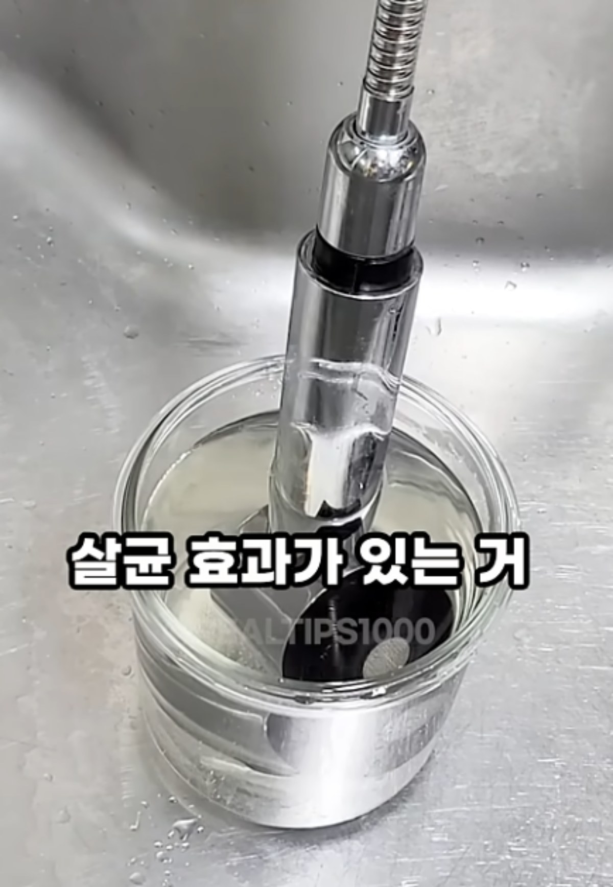 식초는 주방에서도 활용된다. 싱크대 수도꼭지 헤드를 닦지 않았다면, 이 방법에 주목해 보자. 먼저 용기에 식초 한 스푼을 넣고 따뜻한 물을 부어준다. 그 안에 수도꼭지 헤드를 넣어준 후 30분 정도 기다린다.