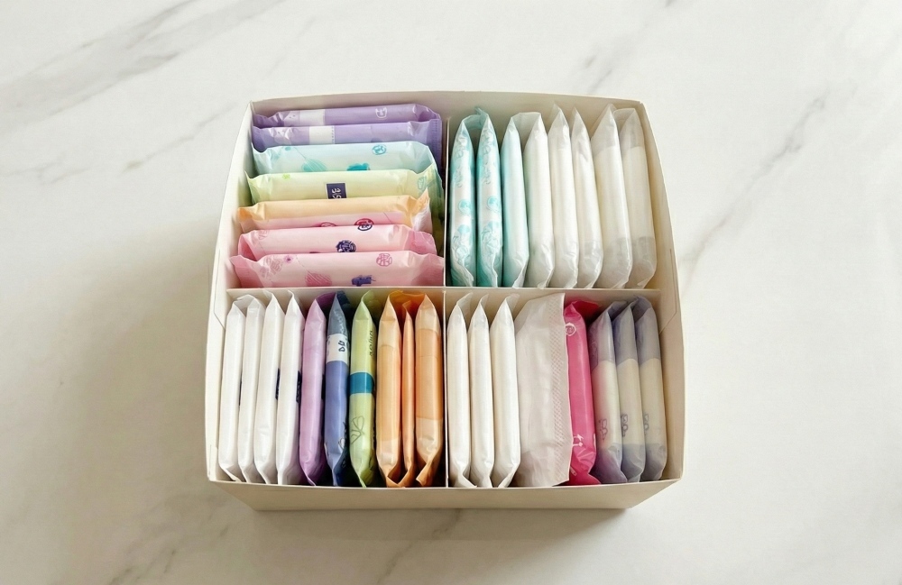 대표적인 것이 바로 '생리대' 보관이다. 캐리어에 생리대를 차곡차곡 세워 담아두면 형태가 흐트러지지 않고 정리된 상태를 유지할 수 있다. 욕실 서랍에 그냥 넣어두면 봉지가 구겨지거나 뒤섞이기 쉬운데, 칸이 있는 캐리어를 이용하면 종류별로 구분해 담기도 편리하다. 다만, 종이 특성상 물기에 직접 닿지 않는 위치에 두는 것은 유의해야 한다. 선반 위나 수건장 안 같은 공간이 적합하다.