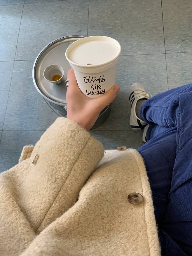 한 손에 든 커피잔은 여유로운 일상의 멋을 더해주는 자연스러운 소품이 되었네요.