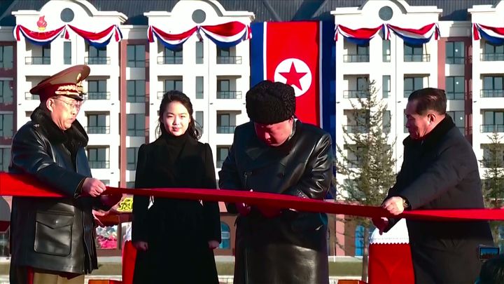 2026년 새별거리 준공식서 김정은 허리 굽히며 유족 인사, 계단 오를 때 가쁜 숨·땀 흘림 장면이 공개됐다. 국정원 “심박·혈압 정상 범위이나 지방·평양 이동 무리” 분석했으나, 텔레그래프는 “40대 초반 젊은 나이 후계 서두르는 건 건강 문제” 지적했다.