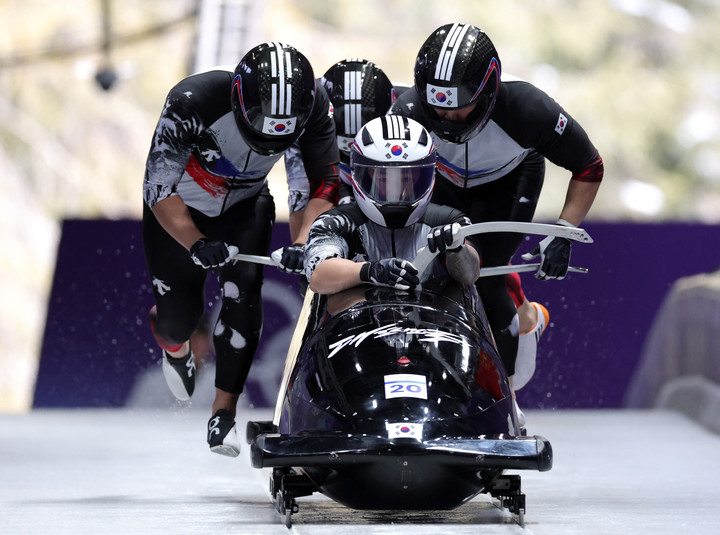봅슬레이는 챔피언 헬멧을 착용한 선수들이 핸들과 브레이크가 연결된 썰매에 올라 얼음 트랙을 질주하는 동계올림픽 종목이다. 김진수 팀은 1차 주행에서 최고 속도 136.10km를 달성하며 힘찬 레이스를 펼쳤다.