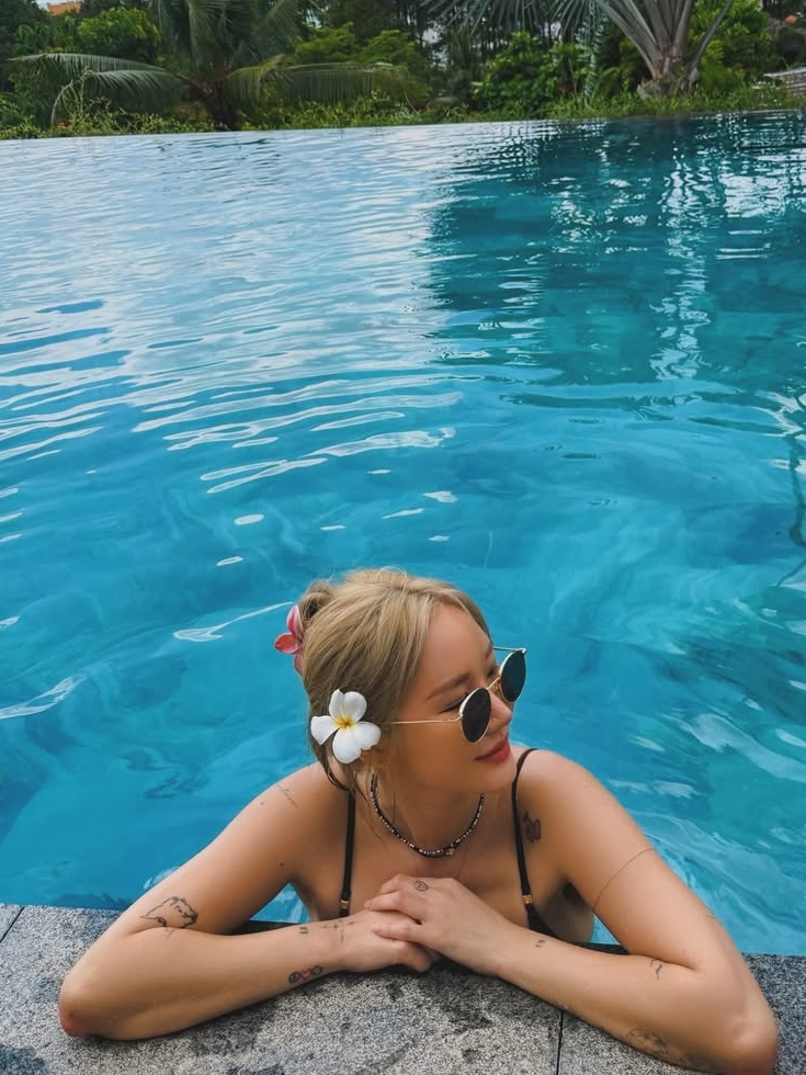 강렬한 백금발 반묶음이 인상적인 EXID 엘리 시크한 아이돌의 강렬한 비키니 코디
