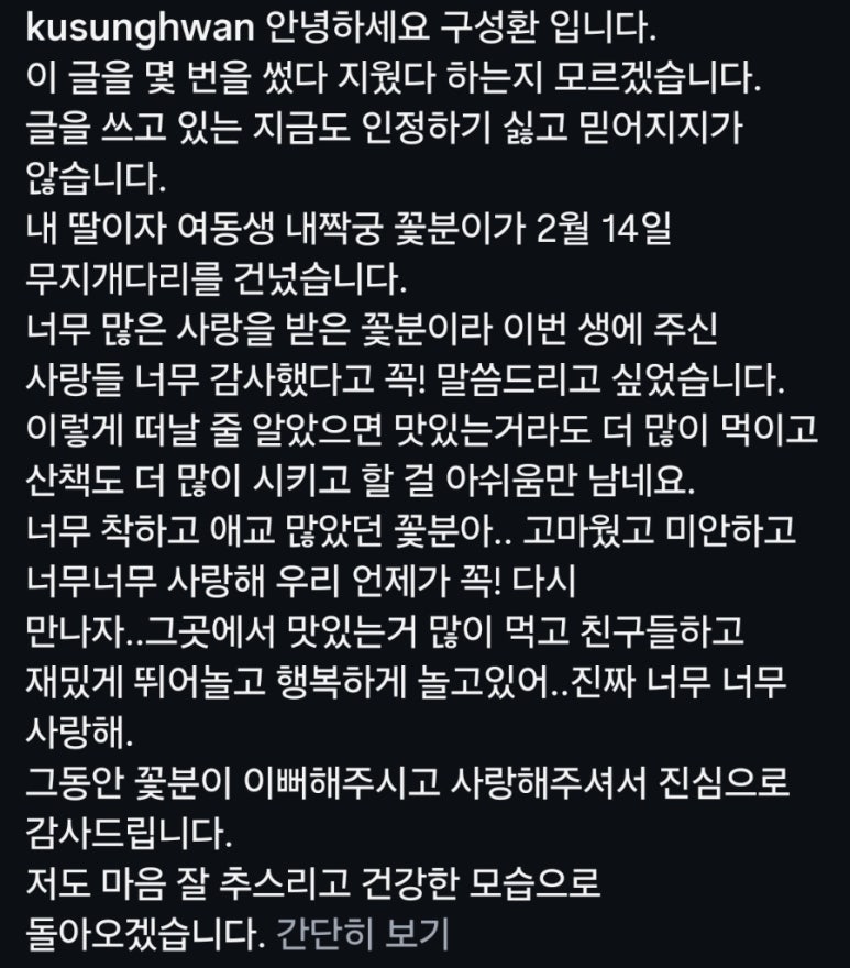무지개다리 건넌 나혼산 구성환 반려견 꽃분이.. 나이 알고 나니 더 먹먹