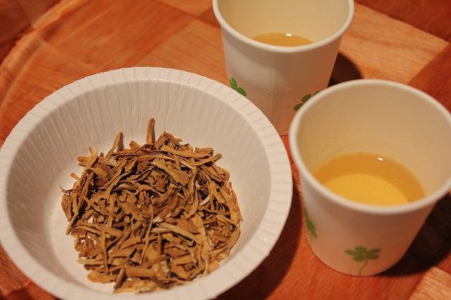 우엉을 깨끗이 씻어 껍질째 얇게 썰어 말린 뒤, 팬에 세 번 이상 덖어서 달여 마시는 것입니다.