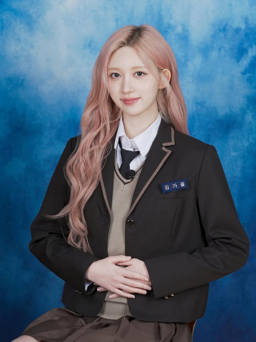 아이브 멤버 안유진, 김가을, 나오이레이, 장원영, 김지원, 이현서 이름으로 졸업 앨범 한 페이지가 완성했다.