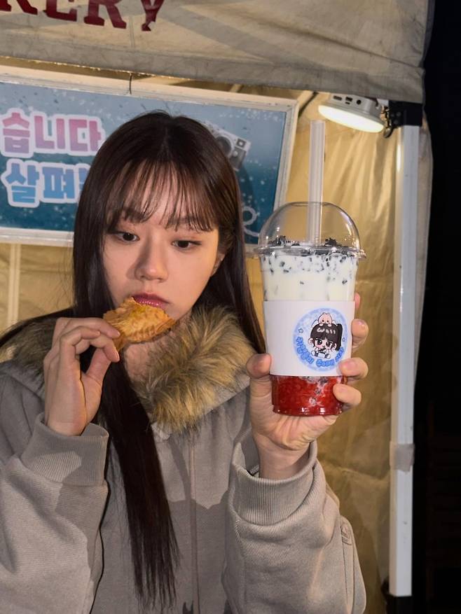 혜리가 보여준 이번 모습은 밤거리의 간식 가판대 앞에서 본인만의 친근하고 사랑스러운 매력을 극대화한 편안한 겨울 차림이에요.