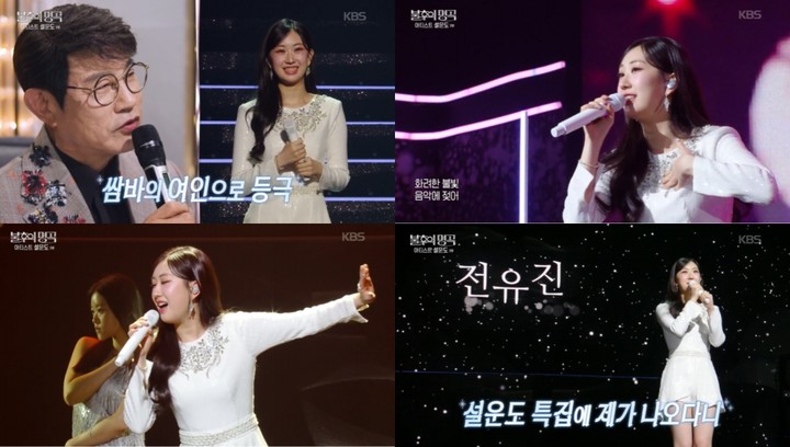 21일 전파를 탄 방송에서 전유진은 설운도의 대표곡 '쌈바의 여인'을 자신만의 해석으로 선보여 주목을 받았다.