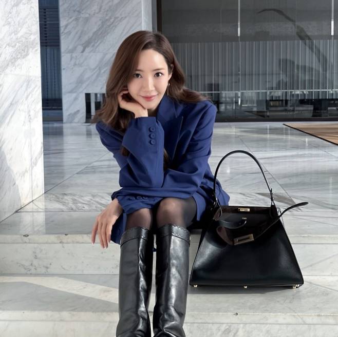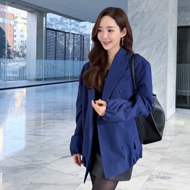 "지적인 우아함의 결정체" 박민영이 보여준 깊이 있는 청색 코트룩