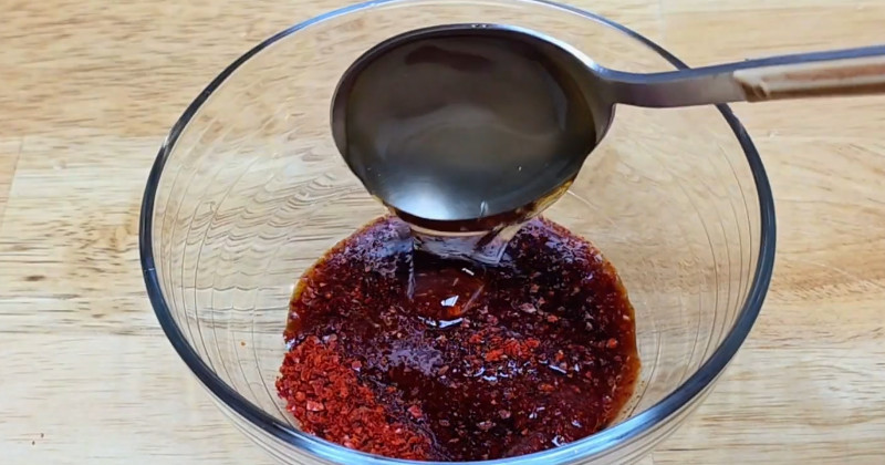 냄비에 물을 붓고 고추장과 케첩, 설탕, 간장, 고춧가루, 다진 마늘을 넣어 잘 풀어준다. 처음부터 양념을 물에 완전히 녹여야 소스가 고르게 퍼진다. 불을 켜고 중불에서 끓이기 시작한다.