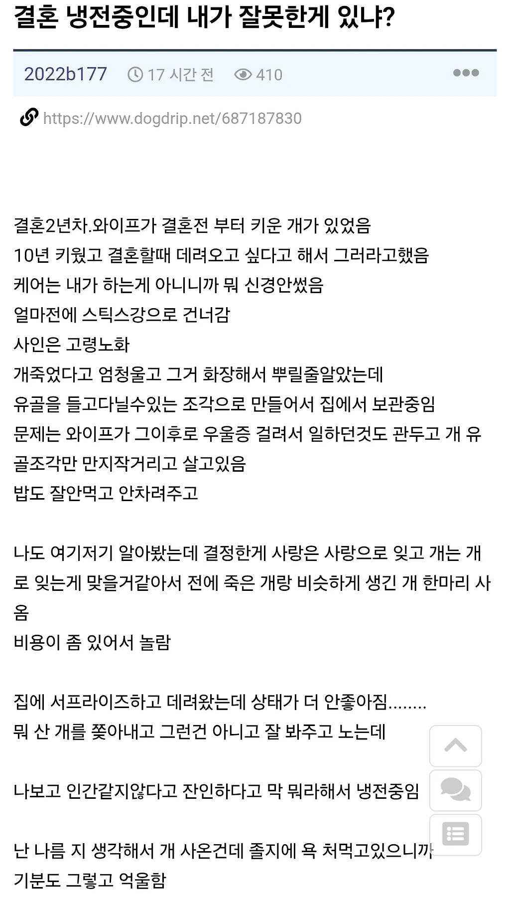 결혼 냉전중인데 내가 뭘 잘못한게 있냐?