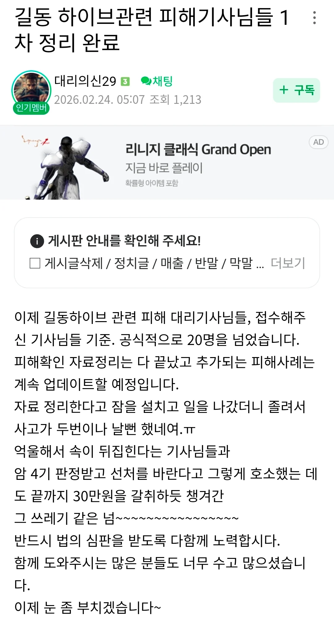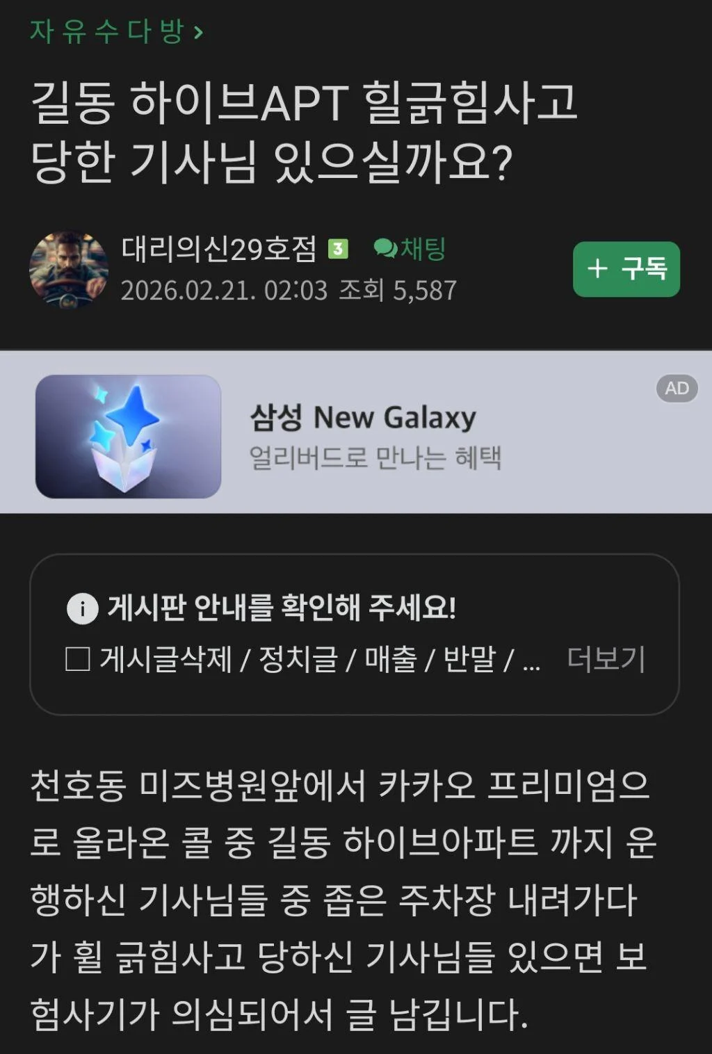 대리기사 카페에서 난리난 길동 아파트 사기꾼