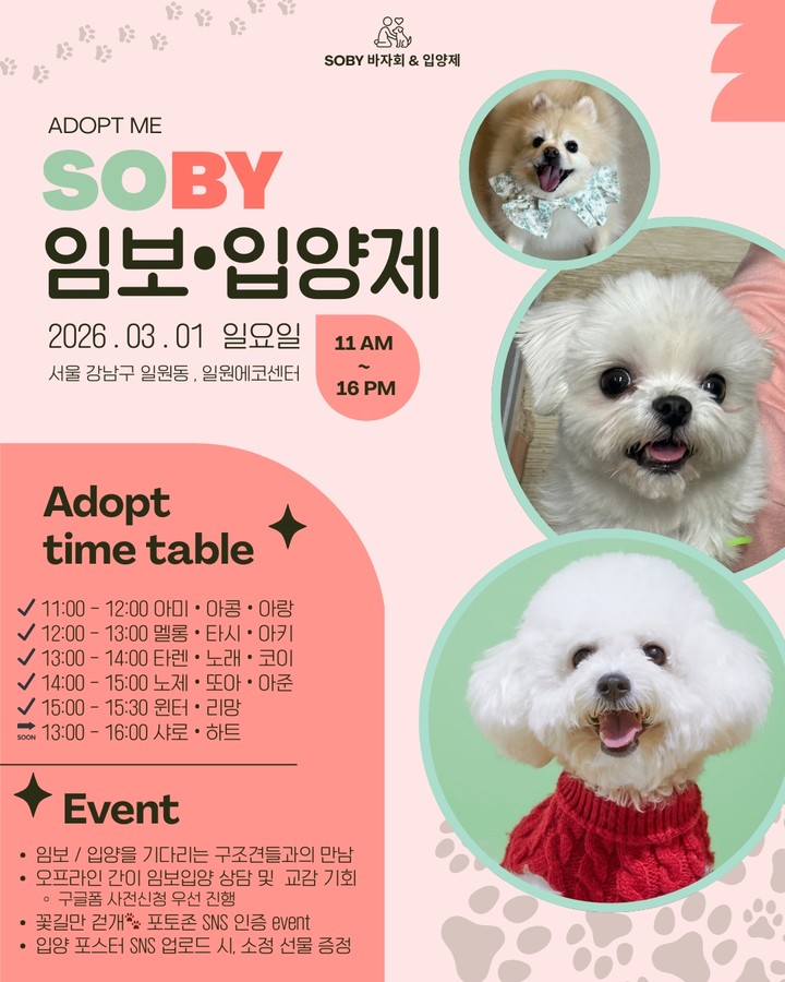 이 행사는 동물구조단체 쏘바이(SOBY)와의 협업을 통해 펼쳐지며, 수익금은 유기·구조견의 치료비 등에 쓰일 예정이다.